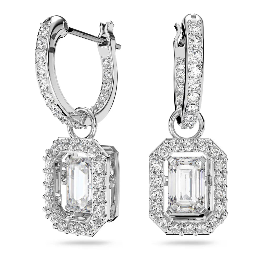 Realza tu estilo diario con estos exquisitos pendientes de la familia Millenia. Diseñados para orejas perforadas, estos pendientes con baño de rodio presentan piedras octogonales danzantes elegantemente enmarcadas por cristales pavé. Su versátil color transparente los hace ideales para lucir solos o combinados con otras joyas coloridas para un acabado impecable.