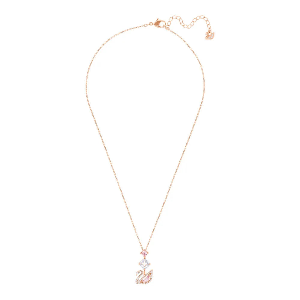Este extraordinario colgante aportará un toque romántico y sofisticado a tu look diario. El diseño chapado en oro rosa está dominado por nuestro icónico motivo de cisne, que brilla con una única piedra de cristal rosa milenario y líneas de pavé transparente. Los cristales engastados en garras, que cuelgan de la parte superior, irradian un brillo extra. Una pieza impresionante con una estética audaz que combinará a la perfección con tus joyas. El colgante viene con una cadena. Combínalo con piezas más sencillas para un look contemporáneo o con artículos de la colección para un toque más purista.