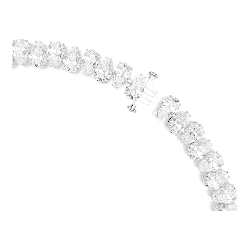 Con sus cortes distintivos, este collar Matrix revoluciona el estilo Tennis. Su diseño rodiado presenta una hilera completa de circonitas Swarovski incoloras en forma de pera. Una infinidad de cristales facetados que añadirán un toque de energía a tu look.